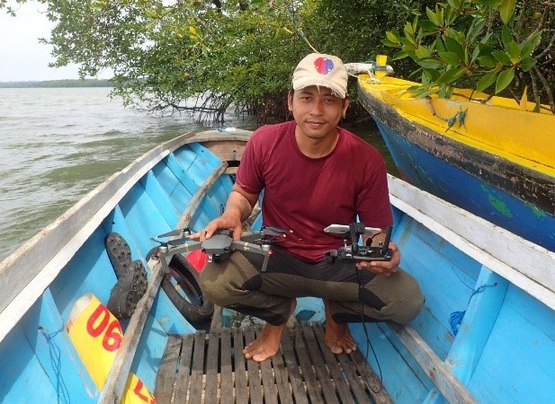 Iyan s pomocí dronu pomáhá i při sledování ilegální výroby dřevěného uhlí.