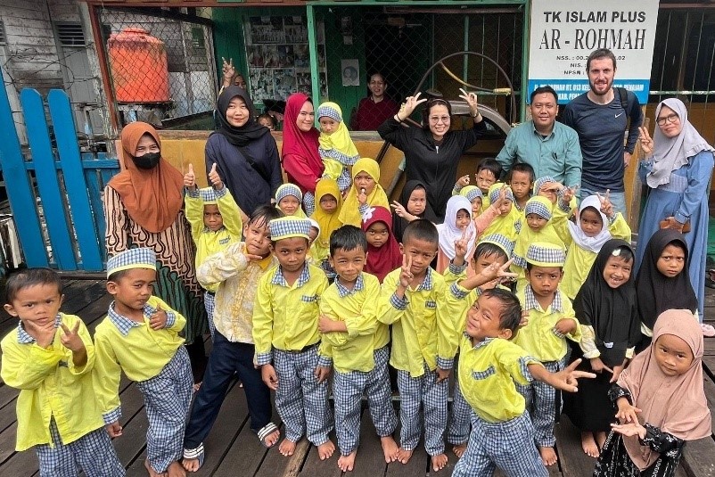 S prosazením pravidelného programu environmentální výchovy na školách v zálivu dlouhodobě těžce bojujeme, především kvůli nezájmu se strany učitelů. V minulém školním roce (2024–2025) se podařilo prosadit a realizovat zvolený program, tedy Education4Conservation, pouze v jedné škole ve vesnici Gersik. V červenci, na začátku nového školního roku (2025–2026), se tým GPTB pokusil získat další školy. Oslovili jsme školy ve třech vesnicích podél pobřeží zálivu. K programu Education4Conservation se takto připojily dvě nové školy (Jenebora a Pantai Lango), zatímco jedna další škola (Kampung Baru) se k programu přihlásila prostřednictvím sítě našich partnerů. Hned první měsíc se sice program zpozdil kvůli oslavám nezávislosti Indonésie, nakonec se ale s výukou přeci jen začalo. Nejmladší děti ve věku 4–5 let si při první aktivitě vyzkoušely poznávání přírody všemi pěti smysly. Pozorovaly rostliny, poslouchaly zvuků ptáků, žab a hmyzu, vnímaly vůni vdechovaného vzduchu a vůni ovoce a květiny. Dotýkaly se a ohmatávali texturu ovoce a listů a na závěr i ochutnaly čerstvé ovoce.