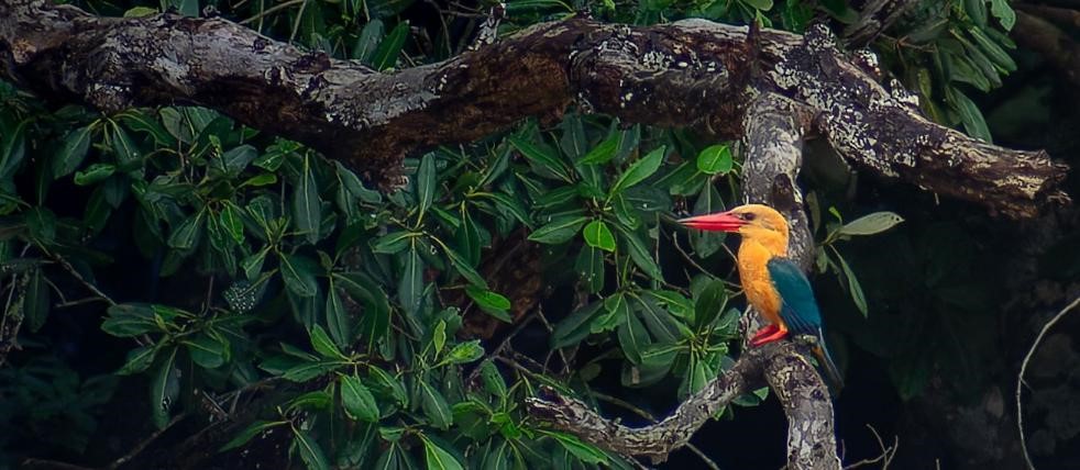 Doposud hojný ledňáček gurial (Pelargopsis capensis) je největší z několika druhů ledňáčků v Balikpapanském zálivu.