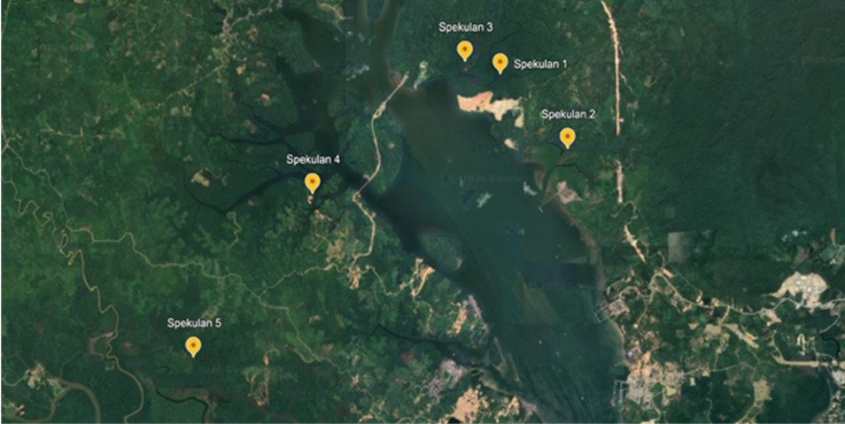 Spekulanti s pozemky si ale nárokují i mnohá další území. Od roku 2022 se datuje také případ záběru mangrovů na řece Berenga. I zde se odpovědné úřady odmítají případem zabývat a veřejná média o něm nechtějí psát. Teprve v prosinci 2025 se nám podařilo odhalit název firmy, PT MIM, nikoli však z oficiálních dokumentů, ale z cedulí, které firma sama v mangrovech instalovala, aby tak svůj nárok bránila před jinými spekulanty. PT MIM už vykácela asi 20 hektarů lesa včetně 3 hektarů mangrovů, jejich záměr ale zůstává neznámý.